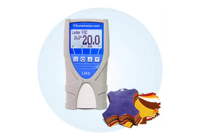 Select the correct calibration curve (depending on the density of the leather) and press the instrument against a stack of hides of at least 10 mm. The display will immediately show the water content and temperature of the sample. The measuring procedure does not damage the surface of the leather. By taking a few measurements at different points on the leather, the average water content can be quickly determined.