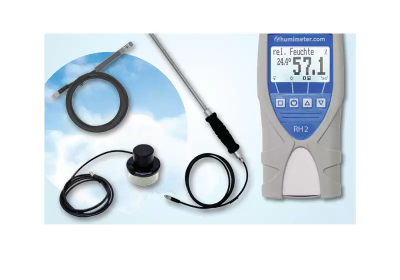Article no. 12005 humimeter RH2 precision air humidity detector, article no. 13700 Measurement chamber for water activity with humidity and temperature sensor and 2-meter connection cable