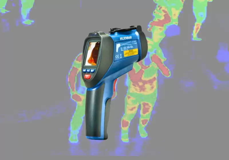The professional infrared thermal imager series, which includes the HLX9860 with a 2.2-inch color TFT LCD display and a micro SD memory card for recording images (JPEG) or videos (3GP) (and subsequent viewing on PC), provides accurate, fast, and simple readings of measured temperature values.
