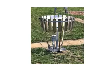 A Tretyakov-style wind shield surrounds a precipitation sensor to block approaching winds. The funnel-shaped design ensures that excess wind is directed downwards, reducing wind speed in the immediate vicinity of the sensor.