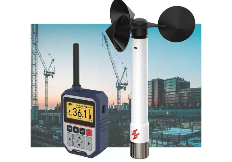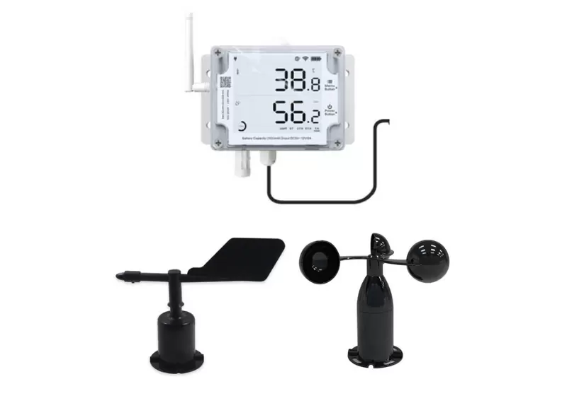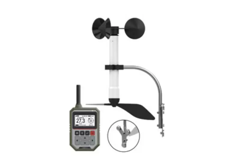 Ricevitore dati portatile• Display grafico retroilluminato + robusta custodia antiscivolo• Allarme velocità del vento acustico e visivo regolabile• Registrazione dei dati con grafici storici del ventoSensore del vento wirelessDati su velocità del vento, temperatura, pressione dell'aria •Ricetrasmettitore wireless ultra lungo da 500 m •Impermeabile e robusto per installazioni industriali •