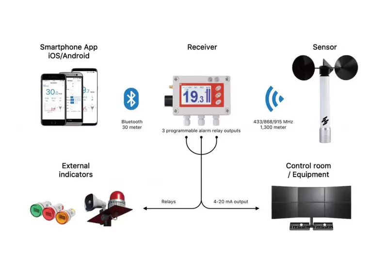 L'avanzata tecnologia wireless di Scarlet collega un sensore del vento a più display. Informa tutti sulle condizioni del vento in tempo reale, senza cavi o interferenze di segnale.