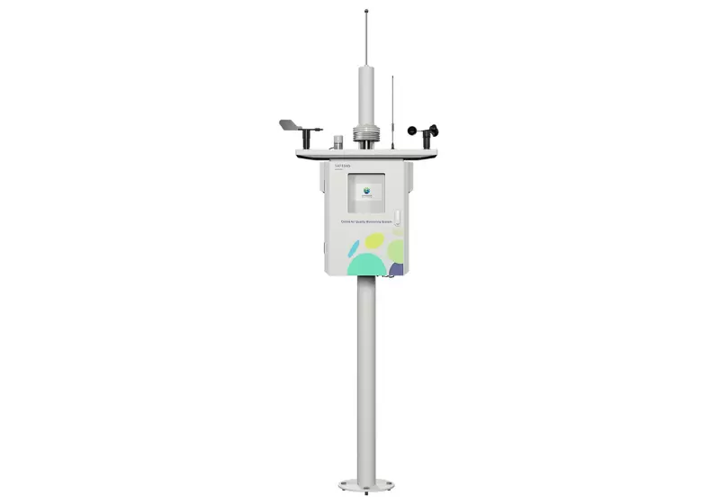 Stazione di monitoraggio della qualità dell'aria esterna ZAQ650 dalle stazioni della serie ZAQ. Misurazione di temperatura, umidità relativa, pressione dell'aria, velocità del vento, direzione del vento, CO, SO2, NO2, O3, PM2,5, PM10, rumore. Standard di uscita RS485.